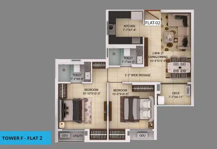 Spread across 11.3 acres of freehold land, Srijan Optima offers spacious and well‑designed 2BHK and 3BHK residences, with sizes ranging from 926 to 1640 sq. ft. (super built‑up).